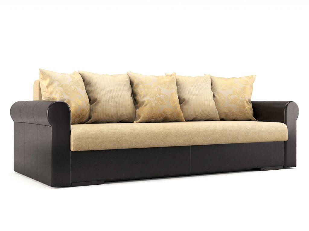 Каркас этого прямого дивана изготовлен из массива дерева, высокопрочной древесно-стружечной плиты (ДСП) и фанеры, а сиденье и спинка с «начинкой» из мебельного пенополиуретана (ППУ) хорошо выдерживают частые трансформации и легко адаптируются к контурам сидящего человека. Комбинированная обивка – экокожа на каркасе и рогожка на сиденье – выглядит стильно и неприхотлива в уходе. Достаточно периодически протирать основание и подлокотники мягкой тканью с чистящим средством и иногда пылесосить сиденье.