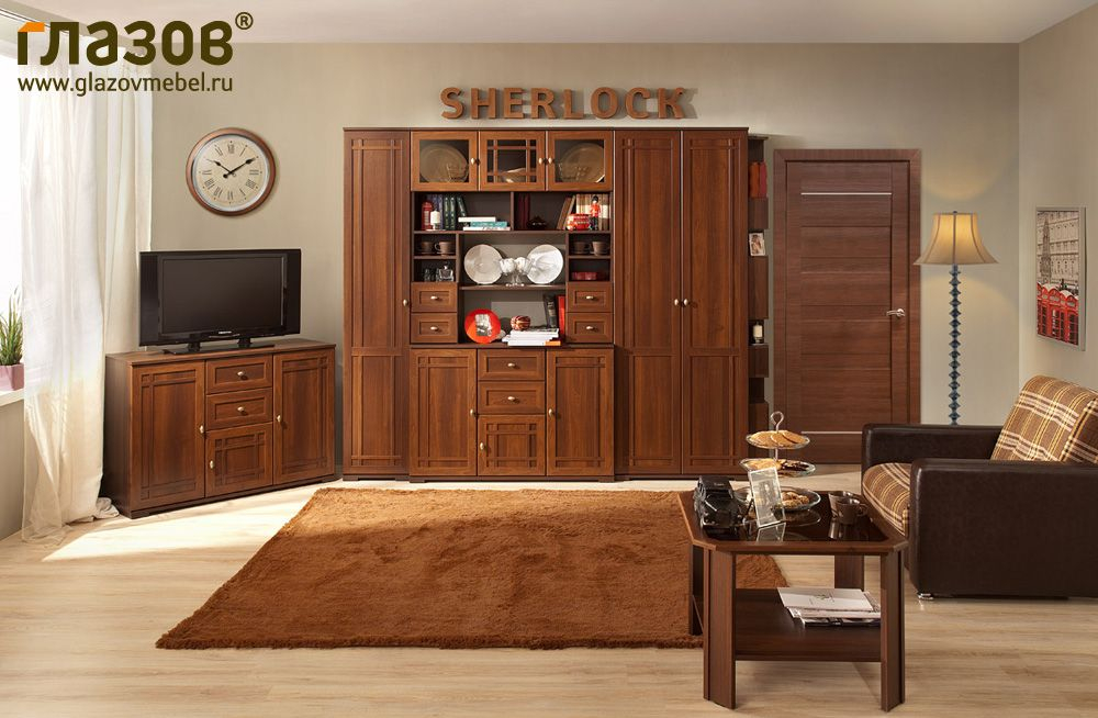 В классической коллекции для гостиной SHERLOCK разработан новый модуль 19 Органайзер специально для комфортной расстановки корпусной мебели в маленьких квартирах с узкой планировкой. Модульное исполнение коллекции SHERLOCK дает возможность идеально комбинировать между собой модули этой коллекции.