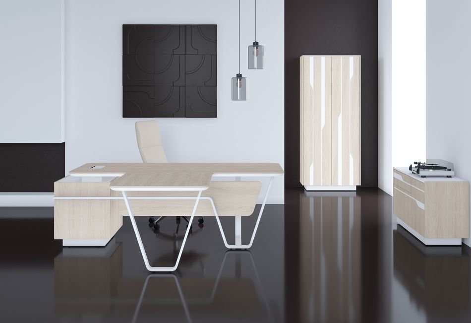 Стол руководителя правый Лине СФ-571201.1 Дуб светлый Черный графит / Line