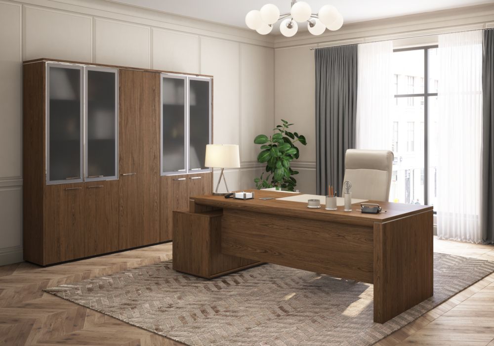 Стол руководителя правый на опорной тумбе ВЕЛАР ВЛ 137 ДТ ДТ Дуб табачный / VELAR