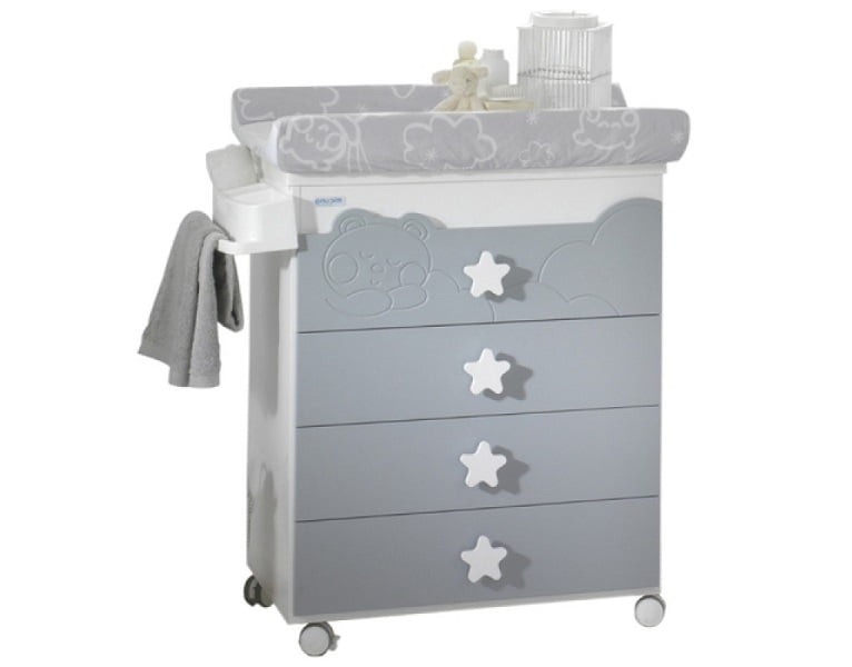 Красивый и практичный пеленальный комод заменяет целый набор разнообразной мебели. Всë в нëм создано для Вашего комфорта: мягкий пеленальный матрасик, под рукой – полочка для важных мелочей, вместительные ящики легко двигаются на металлических направляющих. Если откинуть крышку, под ней откроется анатомическая ванночка для купания. Самоцентрирующиеся колëсики позволяют легко передвинуть комод, не поцарапав паркет.