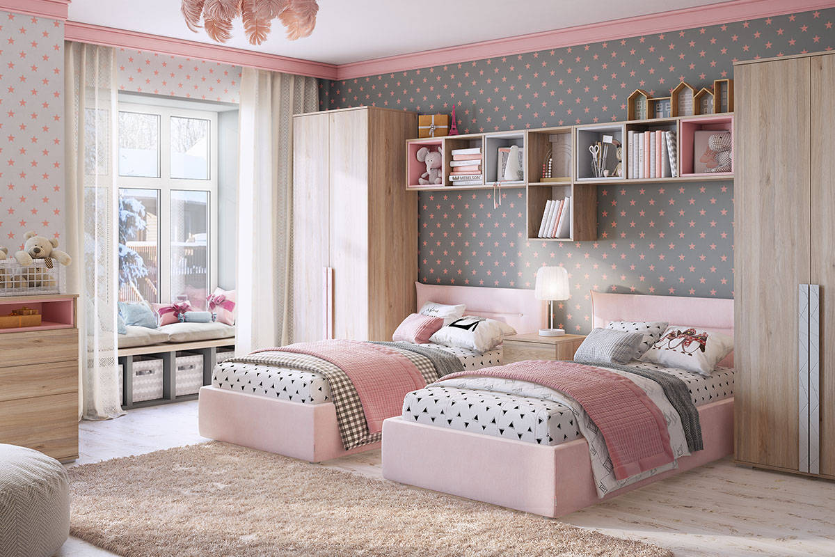 Комплект детской мебели Лайк К122 дуб мария/роуз/галька/нежно-розовый (велюр)