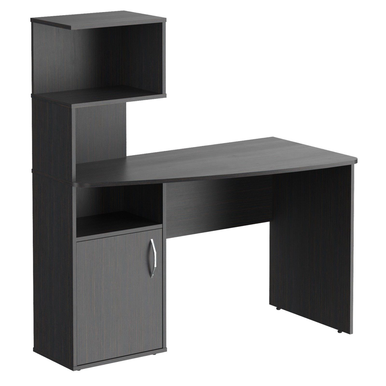 Оригинальный компьютерный стол с необычной, эффектной надстройкой и столешницей нестандартной формы. Укомплектован тумбой с дверью и открытой нишей. Скругленные передние углы столешницы обеспечивают дополнительную безопасность. Стол выполняется в правом и левом вариантах.
