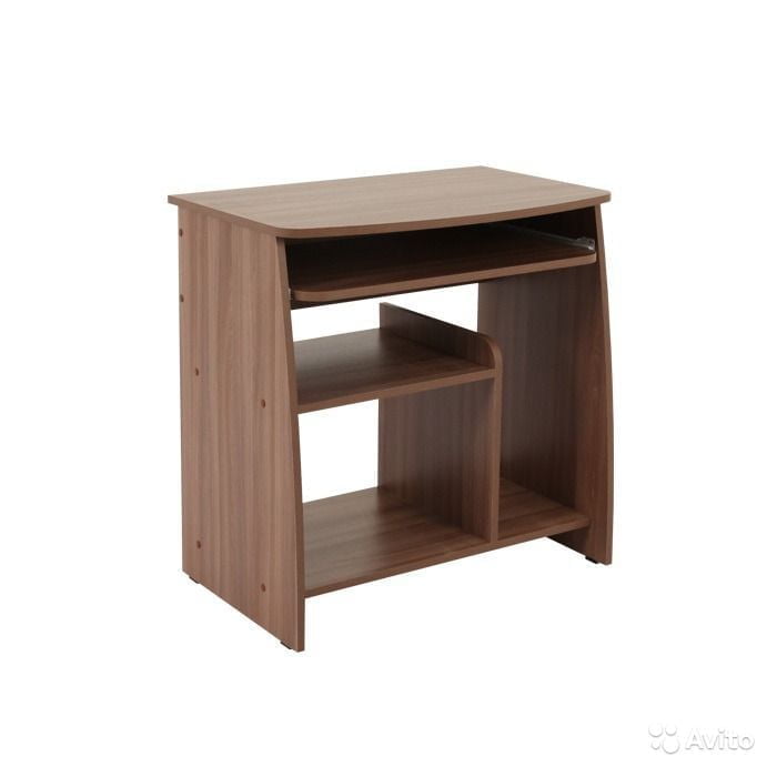 Компактная, и в тоже время, имеющая все необходимые функции, модель компьютерного стола. Качественные материалы и продуманная конструкция привлекают к ней повышенное внимание. Достаточно широкая столешница позволяет поставить на нее монитор или ноутбук и разложить рядом рабочие материалы. В изделии — выдвижная полка для клавиатуры, подставка под компьютерный блок, две открытые полочки для бумаг и книг. Обратите внимание! Сборка стола возможна только в варианте, как показано на фото. Модель изготавливается из ЛДСП толщиной 16 мм, края обработаны кромкой ПВХ — 0,4 и 1 мм. В полочке под клавиатуру используются роликовые направляющие.