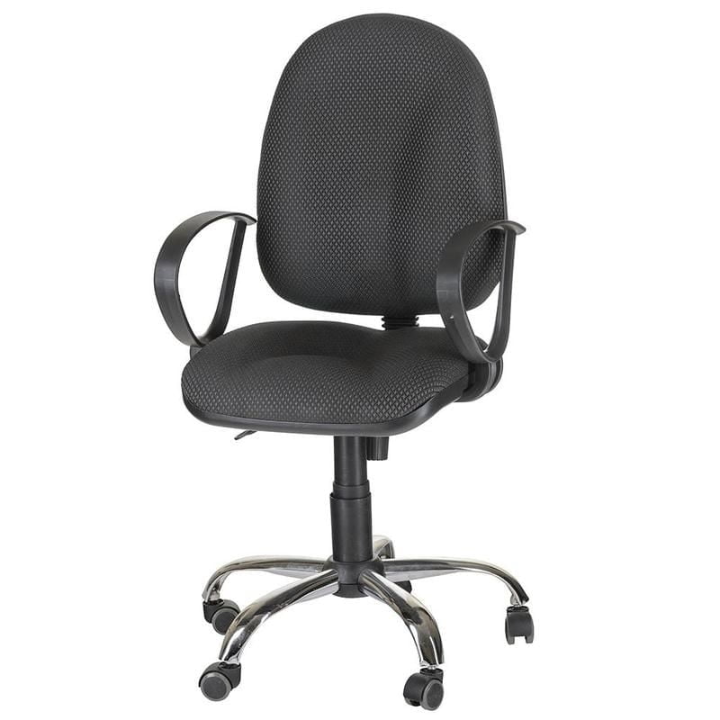Офисное кресло EChair-201 эргономичного дизайна, обитое серым синтетическим текстилем. Спинка с боковой поддержкой поясницы повторяет анатомическую форму тела. Подлокотники с закругленными углами обеспечивают максимальное удобство посадки. Усиленная крестовина, выполненная из хромированного металла, выдерживает нагрузку до 100 кг.