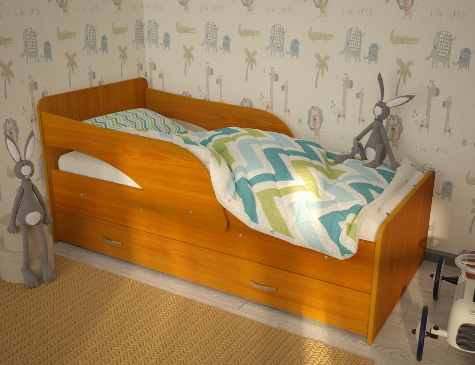 Кровать оснащена вместительным ящиком, куда можно сложить сезонную одежду и обувь, постельное белье и игрушки. Бортики по краям кровати обеспечат безопасность и комфорт даже самого беспокойного малыша.