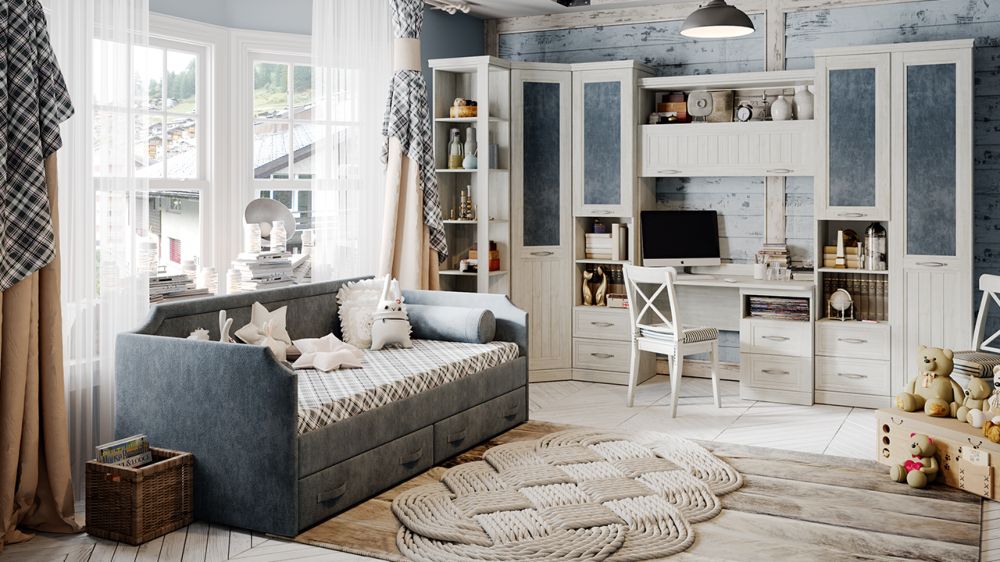 Набор детской мебели Кантри №3 Замша синяя/Винтерберг