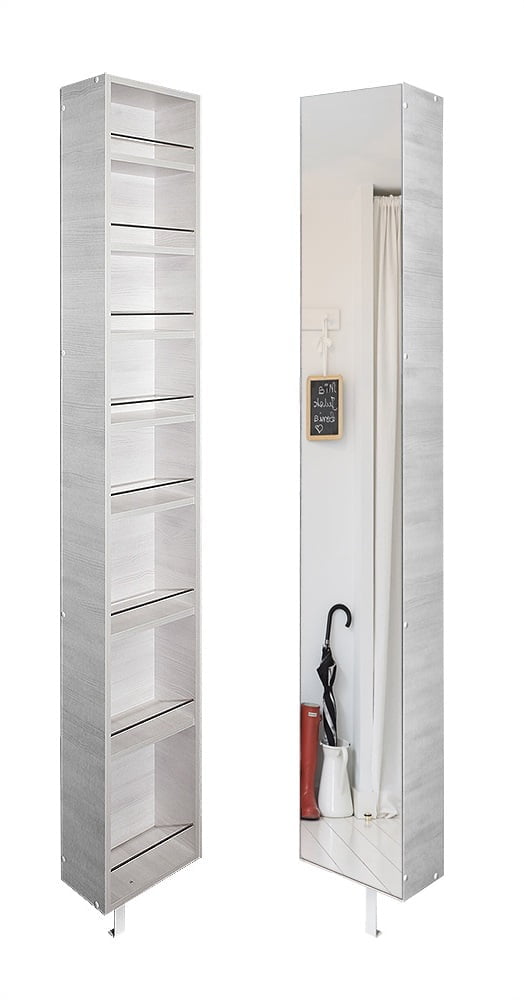 Большой поворотный шкаф Лупо Шелф – это зеркало в полный рост, за которым скрываются 7 широких и глубоких полок с декоративными барьерами из нержавеющей стали. Прекрасное решение для прихожей, так как сочетает глубокие вместительные полки с полноразмерным зеркалом, которое можно повернуть под удобным углом.