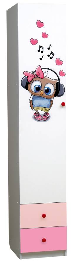 Шкаф 1-но дверный с ящиками и фотопечатью Совята 1.2 Белый/Ярко-розовый/Синий_204888