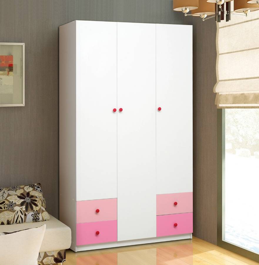 Шкаф 3-х дверный с ящиками Радуга Белый/Ярко-розовый/Синий_205108