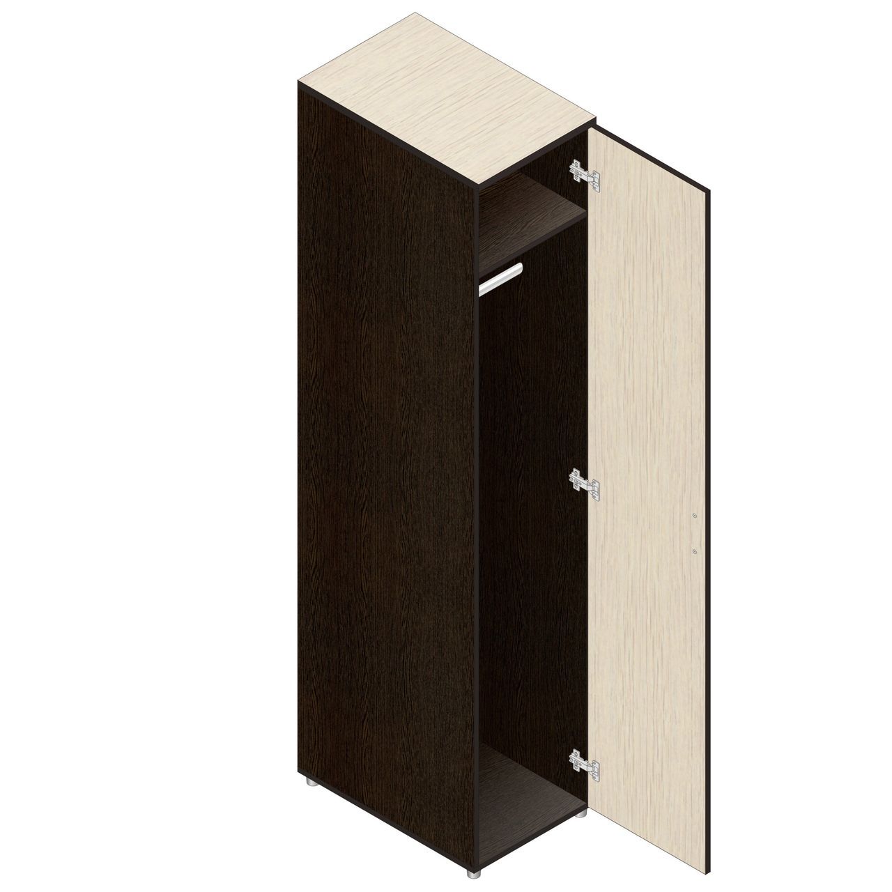 Топ из ДСП 22 мм., остальные элементы из ДСП 16 мм., кромка ПВХ 0,45 мм, регулируемые опоры, горизонтальная штанга для одежды.