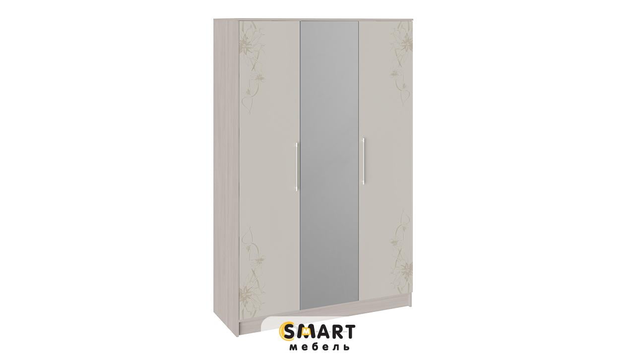 Шкаф комбинированный Мишель Ясень шимо/Бежевый фон глянец с рисунком