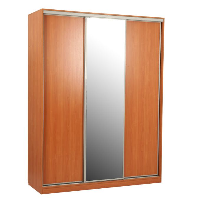 Трехдверный шкаф-купе. Средняя дверь зеркальная. Внутри расположены три штанги для вешалок и полки для одежды. Вы можете выбрать нужную вам ширину шкафа. Изделие выполнено из высококачественной ЛДСП отечественного производства. Края отделаны кромкой ПВХ 0. 4 и 1 мм. Изделие поставляется в разобранном виде, хорошо упаковано в гофротару. В комплект входит инструкция.