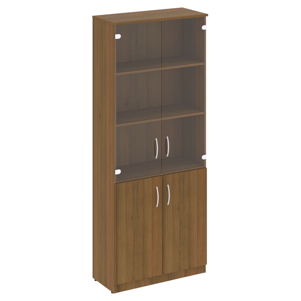 Шкаф высокий широкий (2 низкие двери ЛДСП, 2 средние двери стекло) НОВА С В.СТ-1.2 Орех Гварнери / NOVA S