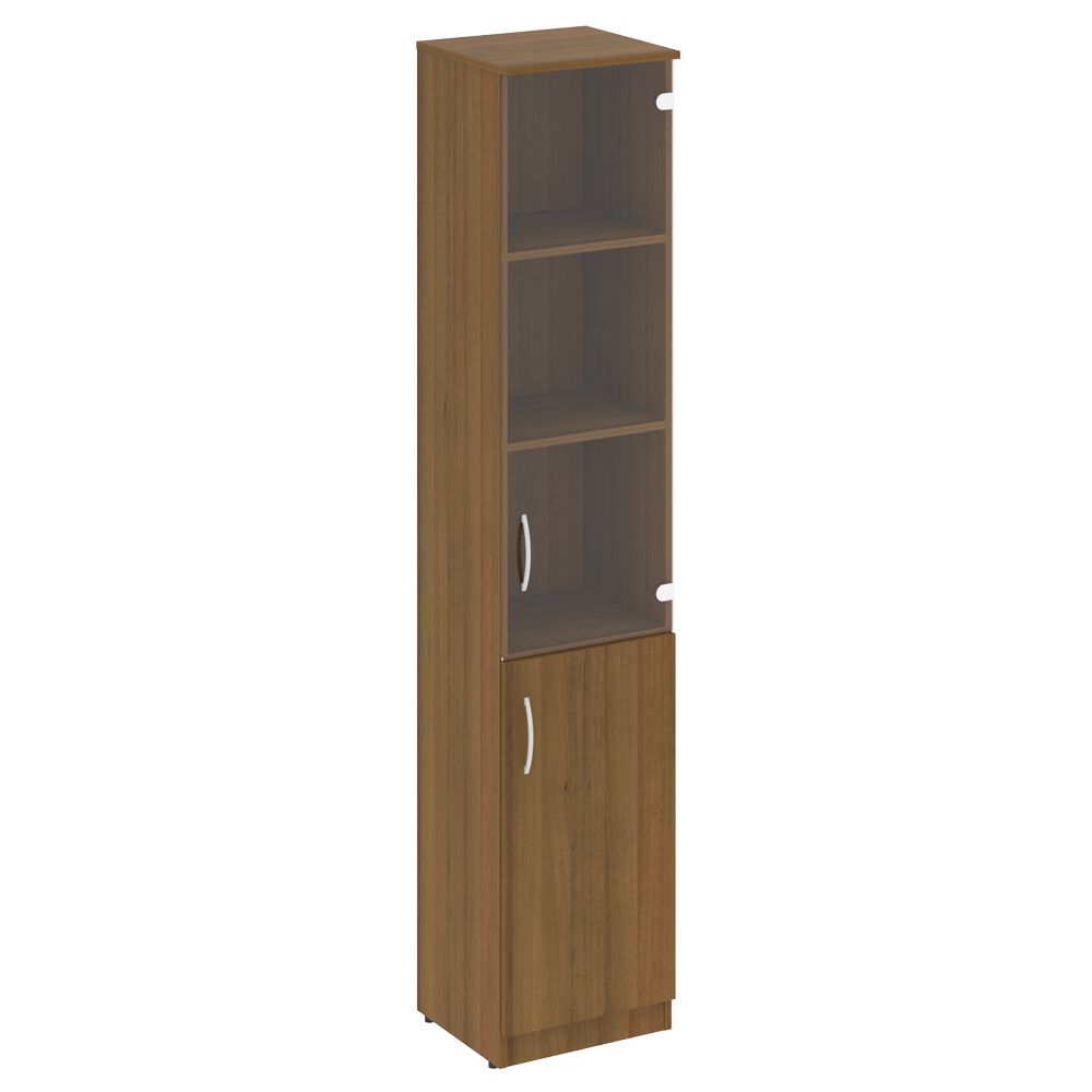 Шкаф высокий узкий правый (1 низкая дверь ЛДСП, 1 средняя дверь стекло) НОВА С В.СУ-1.2 Р Орех Гварнери / NOVA S R