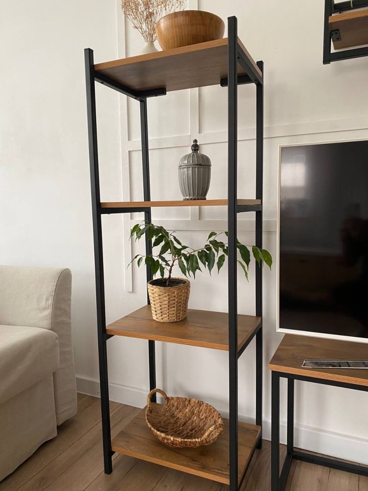 Каркас- сборно разборный(две рамы с опорными связями) из профильной трубы 20*20мм, полки ЛДСП.  Размер: 450*340*1320мм. Цвет: Таксония, дуб Вотан, Молокай