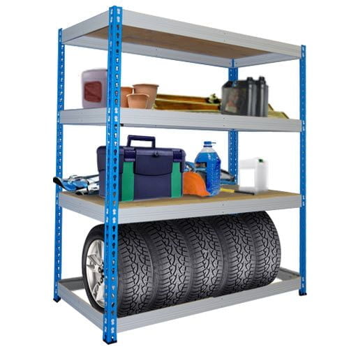 - Стеллажи полочные, сборно-разборные. Особенности конструктивного исполнения стеллажа позволяют производить сборку без дополнительных крепежных элементов. А профиль балки МКФ позволяет использовать стеллаж в 2-х вариантах: одна сторона предназначена для настила, другая – для хранения автомобильных колес. В 1-м варианте каждая полка (ярус) состоит из продольных и поперечных) балок, на которых размещается усиленная фанера, во 2-м – только продольные и поперечные балки. Балки стеллажа крепятся к стойкам при помощи двух замков с зацепами. Стеллажи с представленными размерами позволяют хранить колеса радиусом от 15” и выше.