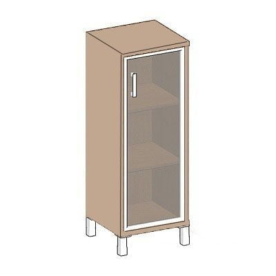 Каркасы шкафов выполнены из ЛДСП толщиной 25мм., кромка ПВХ т. 2мм. Задняя стенка из ХДФ т.4мм разрезная в паз. Внутренние полки из ЛДСП 18мм., кромка ПВХ т.0,8 мм. ЛДСП т 25мм., кромка ПВХ т. 2 с фасадной стороны, кромка ПВХ т. 0,8 с трех сторон. В упаковке один горизонтальный щит, который можно устанавливать вверху или внизу изделия. Опора регулируемая, цвет алюминий. Стекло -тонированное в массе, бронза. Ручка скоба, цвет алюминий. Двери вкладные.