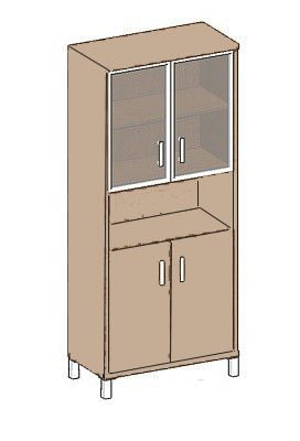 Каркасы шкафов выполнены из ЛДСП толщиной 25мм., кромка ПВХ т. 2мм. Задняя стенка из ХДФ т.4мм разрезная в паз. Внутренние полки из ЛДСП 18мм., кромка ПВХ т.0,8 мм. ЛДСП т 25мм., кромка ПВХ т. 2 с фасадной стороны, кромка ПВХ т. 0,8 с трех сторон. В упаковке один горизонтальный щит, который можно устанавливать вверху или внизу изделия. Опора регулируемая, цвет алюминий. Стеклянная дверь в алюминиевой рамке, стекло - тонированное пленкой, бронза. Ручка скоба, цвет алюминий. Двери вкладные.
