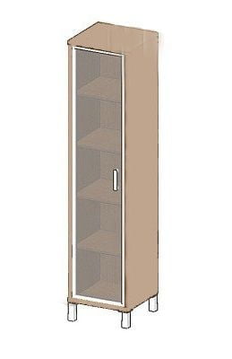 Каркасы шкафов выполнены из ЛДСП толщиной 25мм., кромка ПВХ т. 2мм. Задняя стенка из ХДФ т.4мм разрезная в паз. Внутренние полки из ЛДСП 18мм., кромка ПВХ т.0,8 мм. ЛДСП т 25мм., кромка ПВХ т. 2 с фасадной стороны, кромка ПВХ т. 0,8 с трех сторон. В упаковке один горизонтальный щит, который можно устанавливать вверху или внизу изделия. Опора регулируемая, цвет алюминий. Стеклянная дверь в алюминиевой рамке, стекло - тонированное пленкой, бронза. Ручка скоба, цвет алюминий. Двери вкладные.