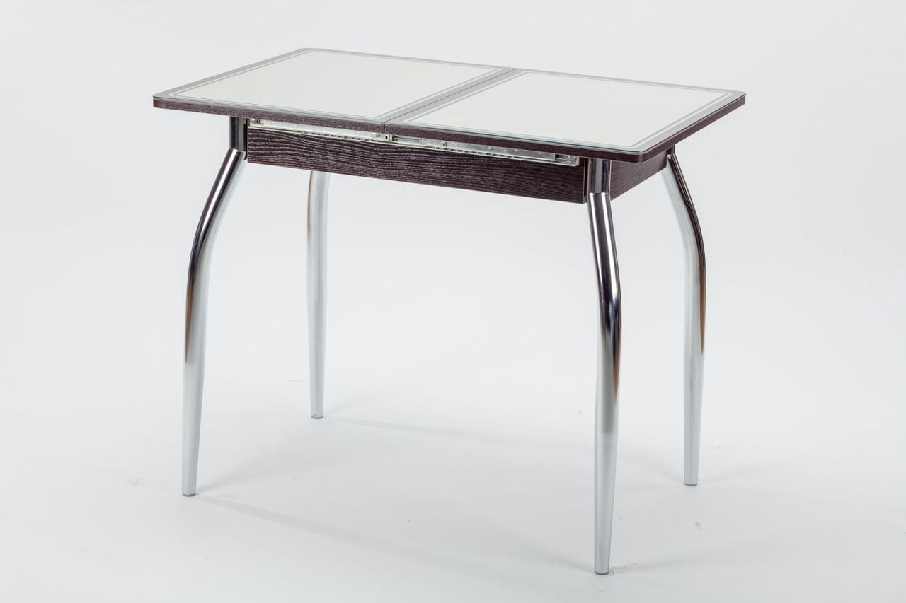 Cтол Аспен КЗ (6195) - столешница выполнена из цветного стекла и кож.зама, ноги металлические цвета металик, подстолье из ЛДСП.
