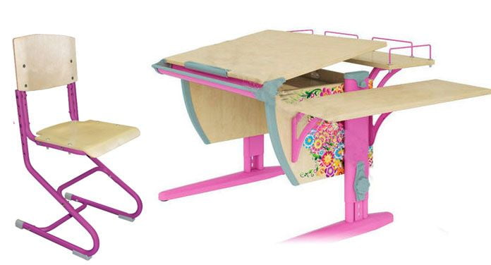 Современный дизайн парты дополняет рисунок, наносимый принтером по ЛДСП специальными красками. У этой парты появилось стильное оформление, которое выделяет ее среди прочих моделей. Кроме того, теперь весь комплект можно выбрать полностью гармоничным по цвету металлокаркаса , пластика и ЛДСП. Здесь хорошо, даже изящно подобраны серый цвет пластика и металлических частей, являющихся отличным фоном для рисунка морской тематики, розовый окрас металлической опоры с живописными цветами, нанесенными на внешних боковых сторонах при оттенке клен ЛДСП. Вряд ли эти рисунки оставят равнодушными самих взрослых и уж тем более они придутся по нраву школьникам, создадут им прекрасное настроение даже во время сложных заданий или контрольных.